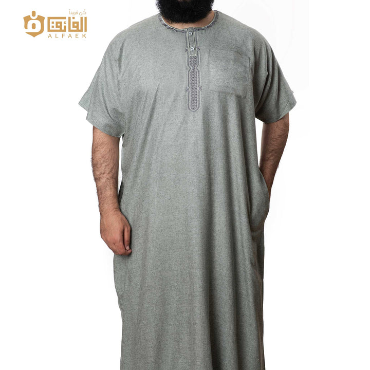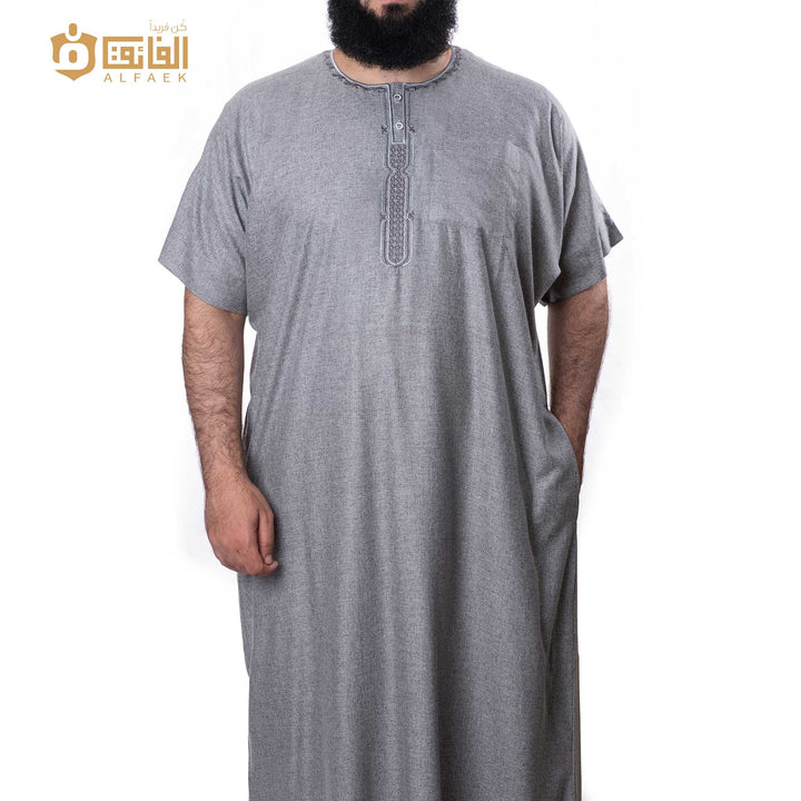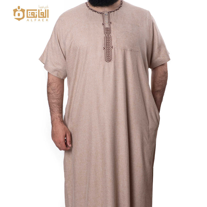 ثوب صيفي بخامة ناعمة وخفيفة، مناسبة للحرارة العالية.