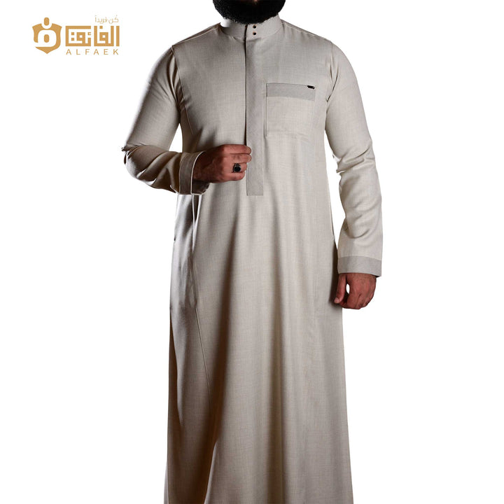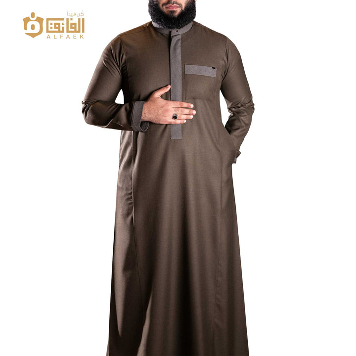 "ثوب شتوي أنيق بتصميم بسيط يعكس الفخامة والعملية.